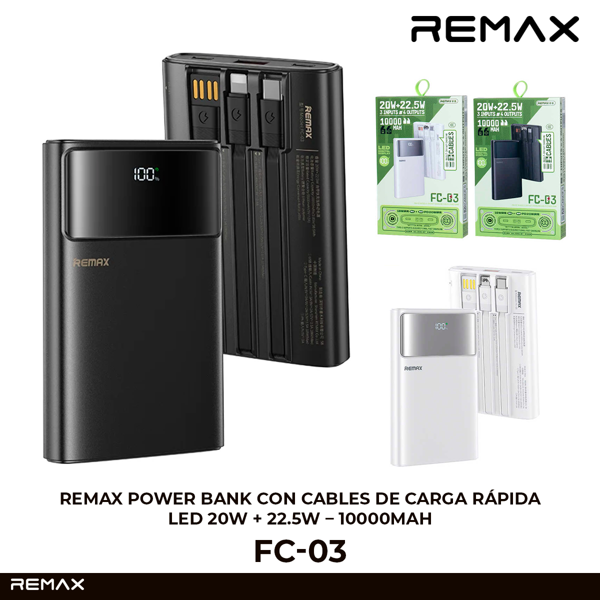 FC-03: Power Bank con Cables de Carga Rápida